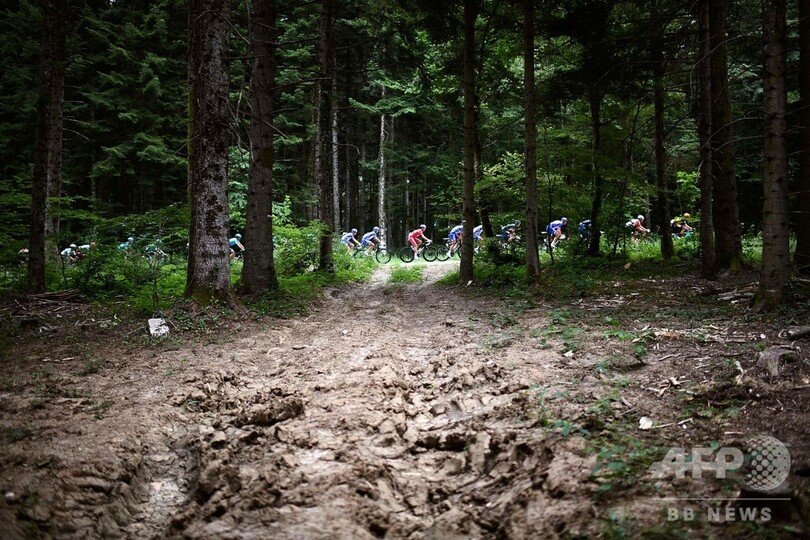 アラフィリップはエペルネ(Epernay)での2日間のステージで総合トップに立っていたものの、ラプランシュデベルフィーユ(La Planche des Belles Filles)でゴールを迎えた11日の第6ステージで6秒差をつけられ、マイヨ・ジョーヌ(イエロージャージー)を譲った。(c)AFP/Damian MCCALL