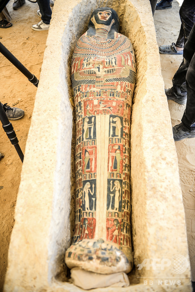 【7月14日 AFP】エジプトで13日、首都カイロの南方に位置するダハシュール(Dahshur)にある古代エジプトのピラミッド2基と、新たに見つかった複数のひつぎが報道陣に公開された。いくつかのひつぎには、保存状態のよいミイラが納められていたという。