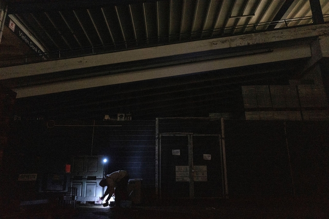 アンドレアがバックパックをいっぱいにするまで15分ほどかかった。私たちは来た道を引き返した。ゲートを超えるのは行きよりも少し楽だった。私たちは急いでスーパーマーケットを後にすると、近くの小さな広場に向かい、そこでカメラを回しながらアンドレアにインタビューした。真夜中近く、目出し帽をかぶり大きなバックパックを背負った男を、3人の男たちがインタビューしたりカメラやビデオカメラで撮影したりしていたが、犬を連れて通りがかった男性はその異様な光景に何の興味も示さなかった。
