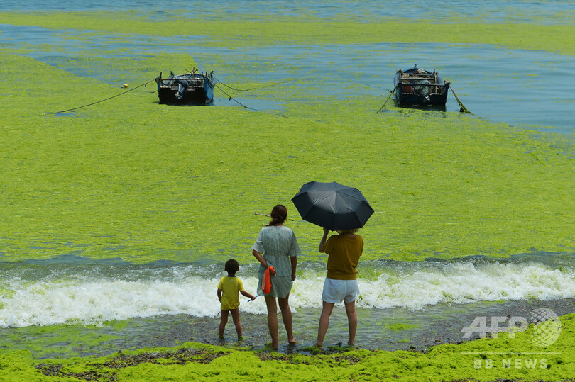 ニュース ライフ 今年も大量発生、海面を覆う鮮やかな緑の藻 中国・青島 2019年7月18日 16:12 発信地:青島/中国 [ 中国 中国・台湾 ] このニュースをシェア ‹ › ❮ 2/9 ❯ 中国東部・山東省青島で、藻が大量発生した海を見る人々(2019年7月11日撮影)。(c)AFP 画像作成中 ! 【7月18日 AFP】中国東部・山東(Shandong)省青島(Qingdao)で今年も藻が大量発生し、海岸が鮮やかな緑色で覆われた。藻の大量発生は2008年から毎年確認されており、海水温上昇と海岸での食用海藻の養殖が原因とみられている。(c)AFP ライフ 一覧へ> メディア・報道関係・法人の方向け 写真・動画 購入のお問合せ>
