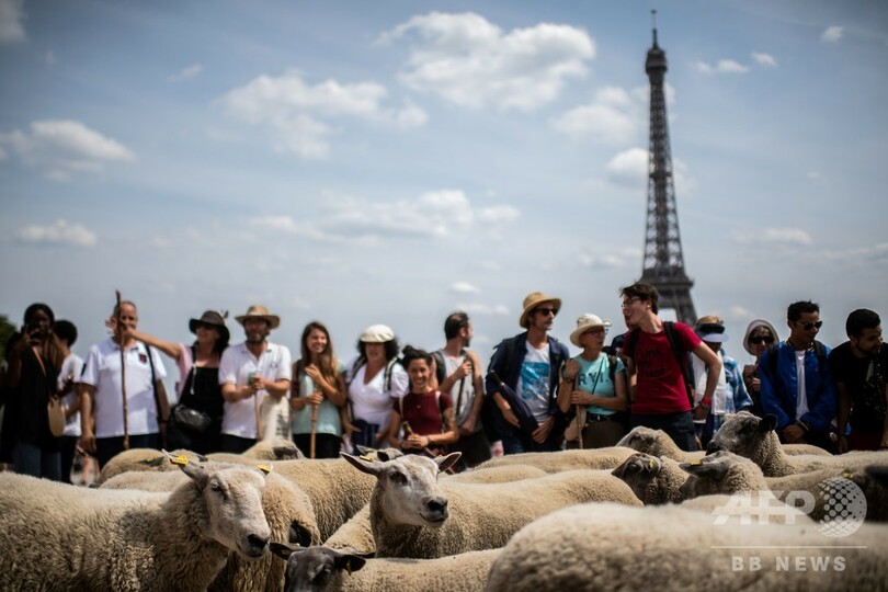 羊の群れが仏パリを大行進、都市農業の利点をPR