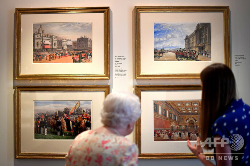 エリザベス女王(Queen Elizabeth II)は17日、一般公開に先駆け展示を見学した。