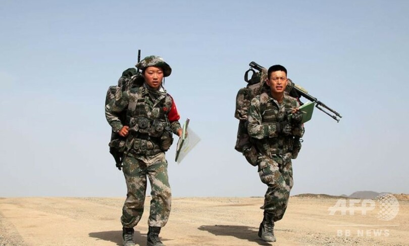 重さ30キロのリュックサックを背負いながら20キロの距離を行軍し、ターゲットの識別や、周囲の草木と一体となるカムフラージュ、素早く穴を掘る訓練などに取り組んだ。各チームは男女を問わず、厳格かつ困難な訓練に挑戦して作戦能力を高めた。(c)CNS/JCM/AFPBB News