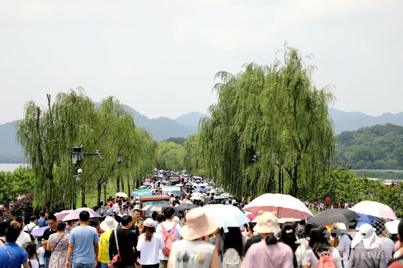 夏休み! 景勝地の西湖に人波 杭州
