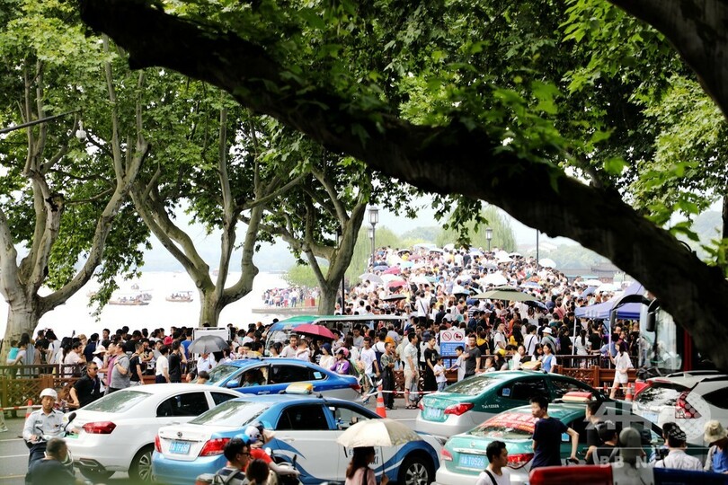 【7月21日 CNS】中国・浙江省(Zhejiang)杭州市(Hangzhou)の景勝地「西湖(West Lake)」で14日、夏休みの旅行のピークを迎え、多くの観光客が押し寄せた。(c)CNS/JCM/AFPBB News