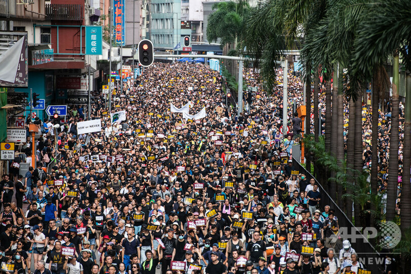 【7月21日 AFP】(更新、写真追加)香港で21日、再び大規模な反政府デモがあった。中国本土への容疑者引き渡しを可能にする「逃亡犯条例」改正案がきっかけとなり、国際的な金融のハブ(中心地)である香港を揺るがしている混乱が収束する兆しは見えていない。