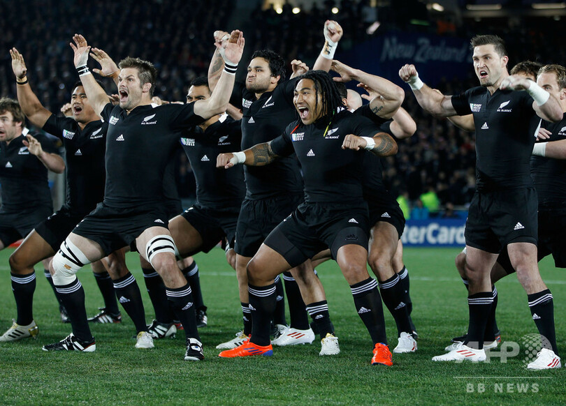 オールブラックスは試合前にハカを踊るのが恒例になっており、1905年に初めて舞ったときから採用されている「カ・マテ(Ka Mate)」と、2005年に導入された「カパ・オ・パンゴ(Kapa o Pango)」の2種類がある。(c)AFP