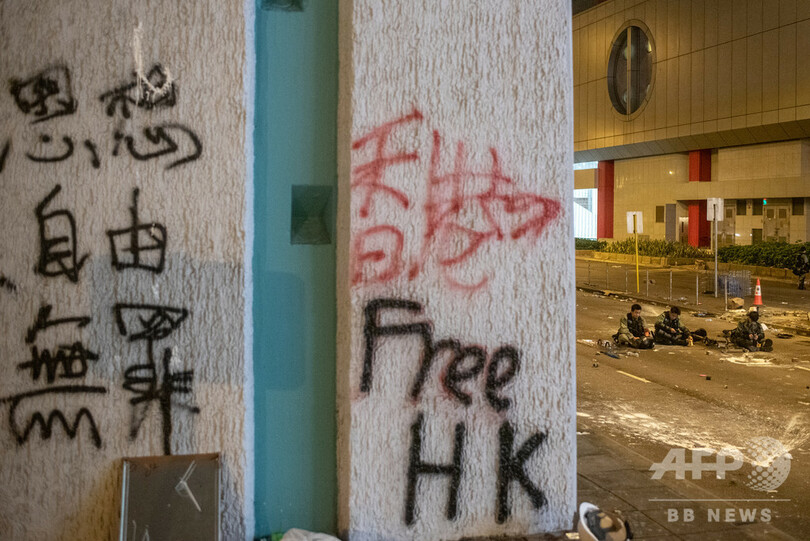 7週連続となった日中の大規模デモでは、香港市内にある中国政府の出先機関までデモ隊が行進し、庁舎に卵を投げつけたり落書きをしたりした。夜になると、市内中心部の商業地区で警察がデモ隊の排除に乗り出し、一帯は機動隊の放った催涙ガスに包まれ騒然となった。