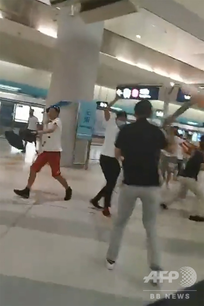 白い服を着た覆面集団の多くは木製・金属製の棒やバットを手に、駅のホームや列車内にいたデモ参加者らに襲い掛かった。フェイスブック(Facebook)を通じて現場の様子をライブ配信していた現地メディア「立場新聞(Stand News)」の女性記者も、地面に叩きつけられ、数回にわたって蹴られた。配信には顔が血だらけになった男性や、床に残された血だまりが映っていた。