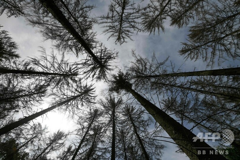 【7月23日 AFP】干ばつの被害を受け枯れたドイツ西部メンデン(Menden)の針葉樹林。先月、欧州大陸を襲った記録的な熱波の余波で、フランスやドイツ、スペインなど欧州の広い範囲で農作物や森林、家庭への給水などに影響が出ている。(c)AFP
