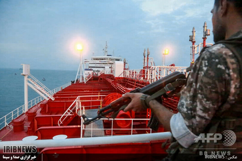 スウェーデン企業が所有する同タンカーの拿捕は、英当局が今月4日、EUの制裁に違反してシリアへ原油を輸送していた疑いがあるとして、イランのタンカー1隻を地中海沖で拿捕したことに対する報復とみられている。(c)AFP/Amir Havasi