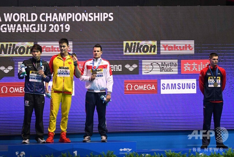 孫楊と英選手が表彰式で一触即発、FINAが両者に警告 世界水泳