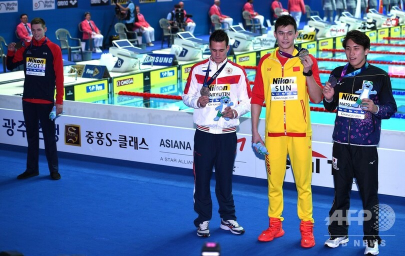孫楊と英選手が表彰式で一触即発、FINAが両者に警告 世界水泳