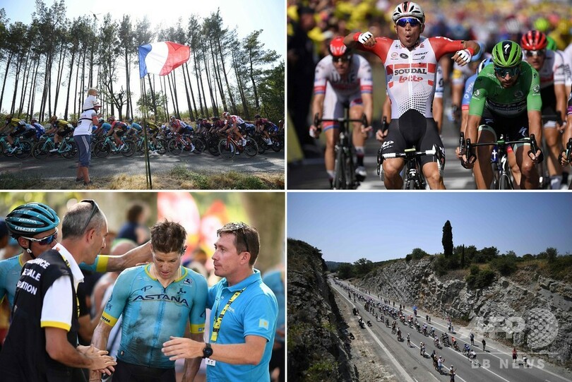一方、第11ステージで大会初勝利を飾り、猛暑のこの日もステージ優勝の有力候補に挙がっていたオーストラリア出身のユアンは、クイックステップのエリア・ヴィヴィアーニ(Elia Viviani、イタリア)に競り勝ってステージを制した。(c)AFP/Damian MCCALL