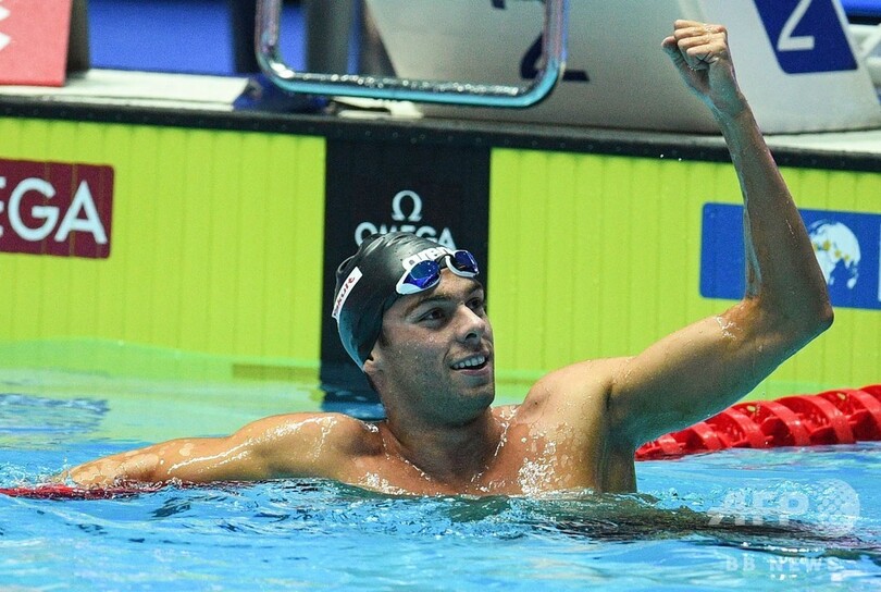 FINAは3選手に警告を出したが、複数の選手がスコットとホートンの無言の抗議への支持を表明している。(c)AFP/Alastair HIMMER