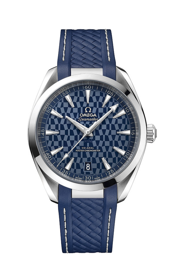 オメガは1932年より、28大会においてオフィシャルタイムキーパーをつとめ、歴史にその名を刻む偉大なアスリートたちの夢を記録し、スポーツの世界における計時技術の進化、発展に深く関わってきた。今回発表されたシーマスター アクアテラには、同シリーズ初となるセラミック ダイアルを採用。ポリッシュ仕上げのブルーダイアルには、東京 2020 オリンピックエンブレムにインスパイアされた模様が施されている。