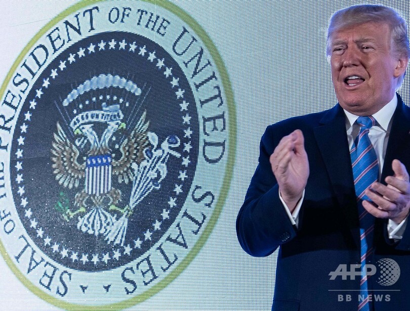 問題の紋章は23日、トランプ氏が米右派学生団体「ターニング・ポイントUSA(Turning Point USA)」の会合に出席し、演説のため登壇した際に背後に映し出されたもの。だが、25日に米紙ワシントン・ポスト(Washington Post)が報じるまで、誰もこの改ざんに気付いていなかった。