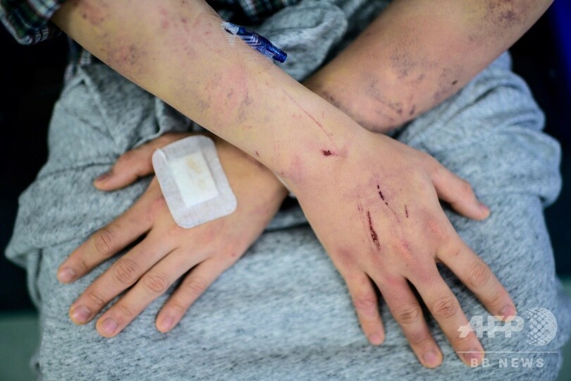 【7月26日 AFP】背中や腕にくっきりと、縦横に走る無数の赤いあざ──香港北西部・元朗(Yuen Long)区の鉄道駅で犯罪組織「三合会(Triad)」の構成員とみられる集団が民主派のデモ参加者らを襲撃した事件で、デモに参加していないのに襲われた男性が24日、恐怖の一部始終をAFPに語った。