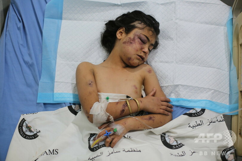 近くの病院で少女らを治療したイスマイル(Ismail)医師(本人の希望により名字は非公開)によると、一家の自宅は政府軍の空爆を受け、写真に写っている姉妹3人のうち1人が死亡し、残る2人は生死の境をさまよっている。