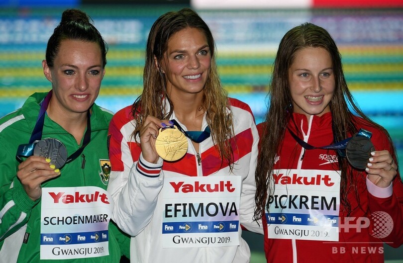 女子200メートル平泳ぎ決勝では、過去に2度のドーピング違反があるロシアのユリア・エフィモワ(Yuliya Efimova)が2分20秒17で金メダルを獲得。銀メダルのタチアナ・スクンマカー(Tatjana Schoenmaker、南アフリカ)には2秒以上もの差をつけた。