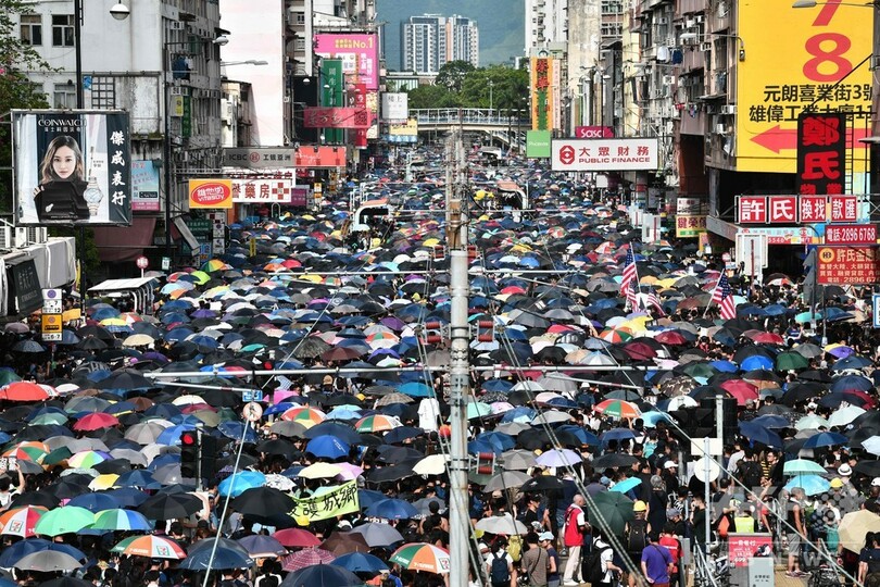 元朗では21日夜、犯罪組織「三合会(Triad)」とみられるバットや棒を手にした白服の集団が鉄道駅に現れ、反政府抗議デモの参加者や通行人らを無差別に襲撃。少なくとも45人が負傷し病院に搬送されたことから、市民の間に激しい怒りが巻き起こった。