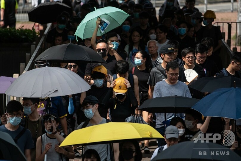 【7月27日 AFP】中国本土に近い香港北西部の元朗(Yuen Long)区で27日、白服の集団による民主派デモ参加者襲撃事件を受けてデモ禁止令が出されているにもかかわらず、多数の市民が鉄道駅に集まり、襲撃に抗議するデモ行進を始めた。