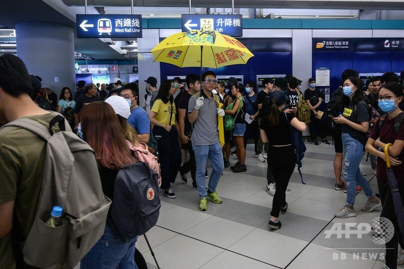 【7月27日 AFP】中国本土に近い香港北西部の元朗(Yuen Long)区で27日、白服の集団による民主派デモ参加者襲撃事件を受けてデモ禁止令が出されているにもかかわらず、多数の市民が鉄道駅に集まり、襲撃に抗議するデモ行進を始めた。