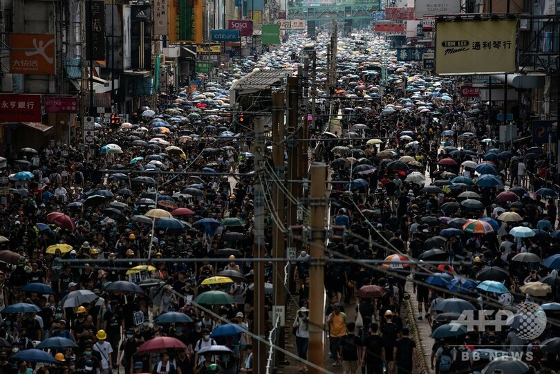 【7月27日 AFP】中国本土に近い香港北西部の元朗(Yuen Long)区で27日、白服の集団による民主派デモ参加者襲撃事件を受けてデモ禁止令が出されているにもかかわらず、多数の市民が鉄道駅に集まり、襲撃に抗議するデモ行進を始めた。