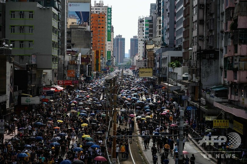 別の参加者女性も「私たちは怖がっていない、香港人は恐れて委縮したりしないと示したいんです」と語った。(c)AFP/Yan ZHAO, Elaine YU