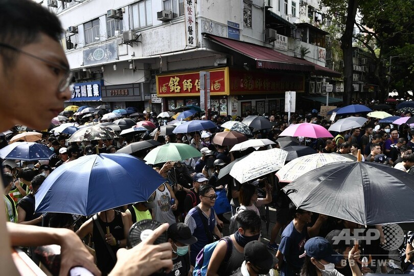 【7月27日 AFP】中国本土に近い香港北西部の元朗(Yuen Long)区で27日、白服の集団による民主派デモ参加者襲撃事件を受けてデモ禁止令が出されているにもかかわらず、多数の市民が鉄道駅に集まり、襲撃に抗議するデモ行進を始めた。
