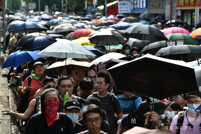 【7月27日 AFP】中国本土に近い香港北西部の元朗(Yuen Long)区で27日、白服の集団による民主派デモ参加者襲撃事件を受けてデモ禁止令が出されているにもかかわらず、多数の市民が鉄道駅に集まり、襲撃に抗議するデモ行進を始めた。