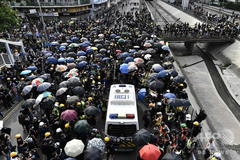 【7月27日 AFP】香港北西部の元朗(Yuen Long)区で27日、1週間前に起きた白服の集団による民主派デモ参加者襲撃に抗議する人々に向けて、警官隊が催涙弾を発射した。国際的な金融のハブ(中心地)である香港は、混乱の様相を呈している。
