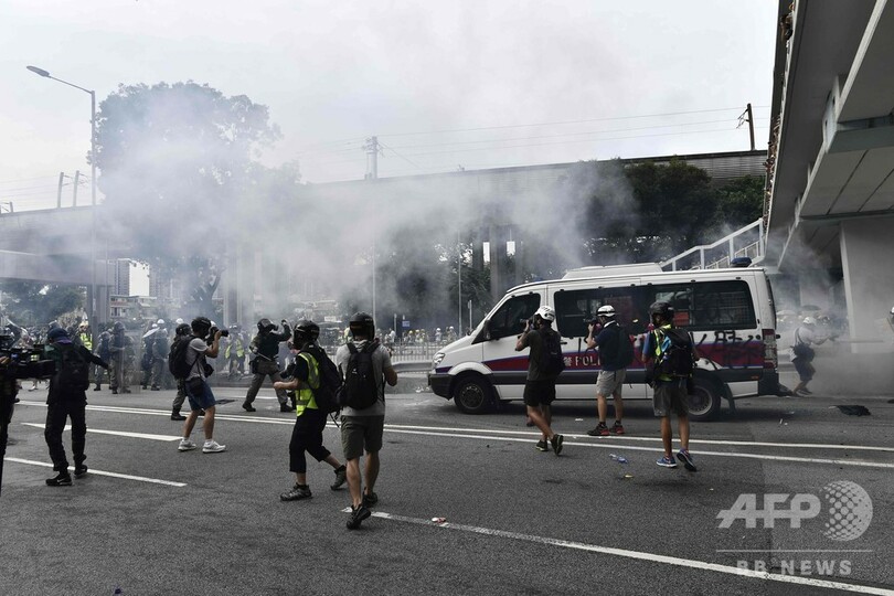 【7月27日 AFP】香港北西部の元朗(Yuen Long)区で27日、1週間前に起きた白服の集団による民主派デモ参加者襲撃に抗議する人々に向けて、警官隊が催涙弾を発射した。国際的な金融のハブ(中心地)である香港は、混乱の様相を呈している。