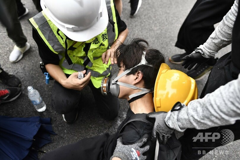 【7月27日 AFP】香港北西部の元朗(Yuen Long)区で27日、1週間前に起きた白服の集団による民主派デモ参加者襲撃に抗議する人々に向けて、警官隊が催涙弾を発射した。国際的な金融のハブ(中心地)である香港は、混乱の様相を呈している。