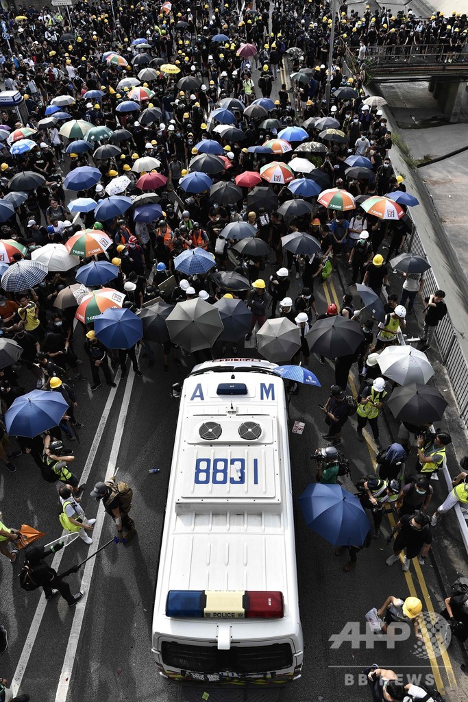 【7月27日 AFP】香港北西部の元朗(Yuen Long)区で27日、1週間前に起きた白服の集団による民主派デモ参加者襲撃に抗議する人々に向けて、警官隊が催涙弾を発射した。国際的な金融のハブ(中心地)である香港は、混乱の様相を呈している。