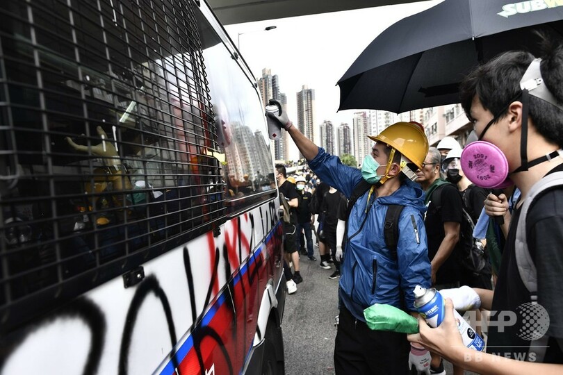 【7月27日 AFP】香港北西部の元朗(Yuen Long)区で27日、1週間前に起きた白服の集団による民主派デモ参加者襲撃に抗議する人々に向けて、警官隊が催涙弾を発射した。国際的な金融のハブ(中心地)である香港は、混乱の様相を呈している。