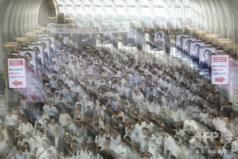 【8月3日 AFP】朝のラッシュ時間に東京・品川駅を利用する通勤客。2020年東京五輪とパラリンピックには、何十万もの人々の参加が見込まれており、混雑することで悪名高い都市の通勤ルートにさらなる負担がかかることから、当局は五輪での交通渋滞を避けるために「在宅」を呼びかけている。(c)AFP