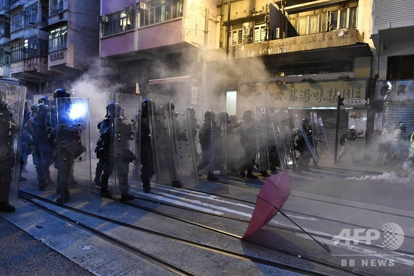 香港、デモ参加者に警察が催涙弾発射 中国の出先機関付近で