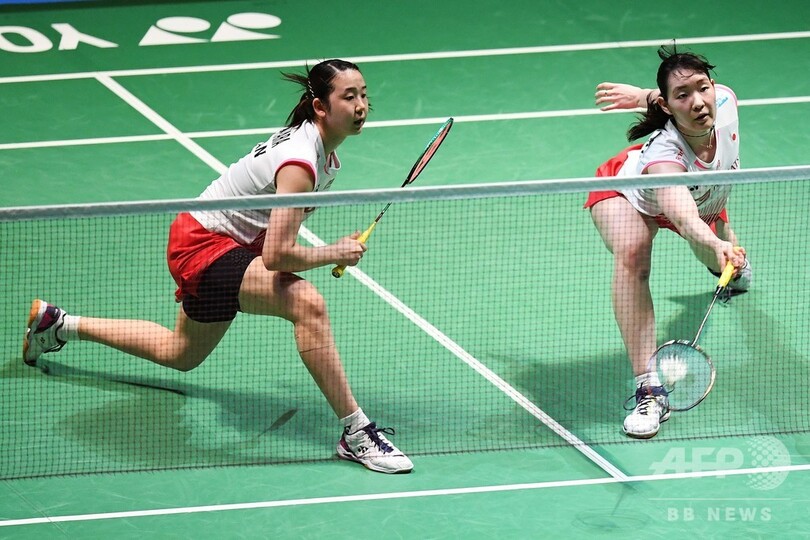 女子ダブルス決勝に臨んだ第1シードの松本麻佑(Mayu Matsumoto)/永原和可那(Wakana Nagahara)組は12-21、12-21で韓国の金昭英(So-Yeong Kim、キム・ソヨン)/孔熙容(Hee-Yong Kong、コン・ヒヨン)組に敗れ、タイトル獲得はならなかった。(c)AFP