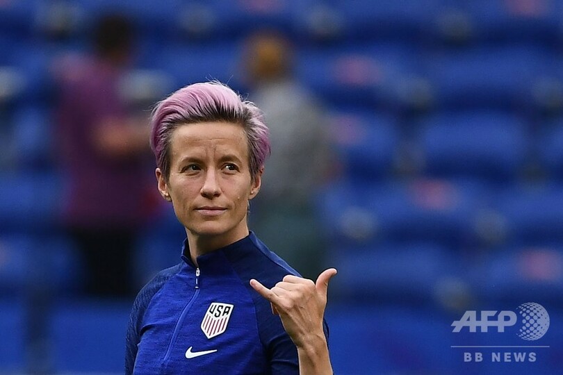 決勝前、チームバスの前で行われた即席の会見がその一例だ。黒いサングラス姿でバスから降りた主将でフォワードのミーガン・ラピノー(Megan Rapinoe)選手(34)は、会見を米国人が持つ価値観を話し合う場に変えてしまった。