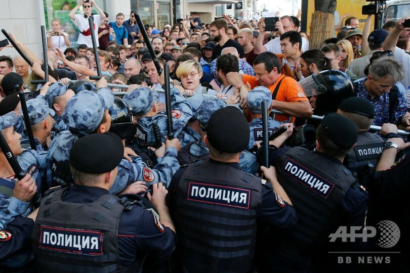 27日のデモは、9月に実施されるモスクワ市議会選で著名な野党候補の立候補登録が拒否されたことを受けて実施されたもので、約3500人が参加。当局の許可は得ておらず、市役所前に集まろうとするデモ隊を警察が警棒を使用して取り締まり、現場にいたAFP記者によると負傷者も出た。