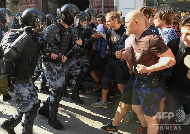 27日のデモは、9月に実施されるモスクワ市議会選で著名な野党候補の立候補登録が拒否されたことを受けて実施されたもので、約3500人が参加。当局の許可は得ておらず、市役所前に集まろうとするデモ隊を警察が警棒を使用して取り締まり、現場にいたAFP記者によると負傷者も出た。