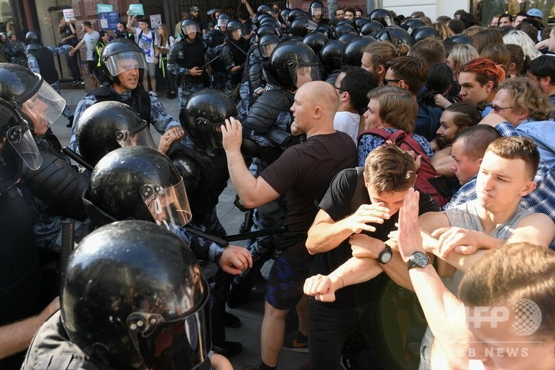 27日のデモは、9月に実施されるモスクワ市議会選で著名な野党候補の立候補登録が拒否されたことを受けて実施されたもので、約3500人が参加。当局の許可は得ておらず、市役所前に集まろうとするデモ隊を警察が警棒を使用して取り締まり、現場にいたAFP記者によると負傷者も出た。