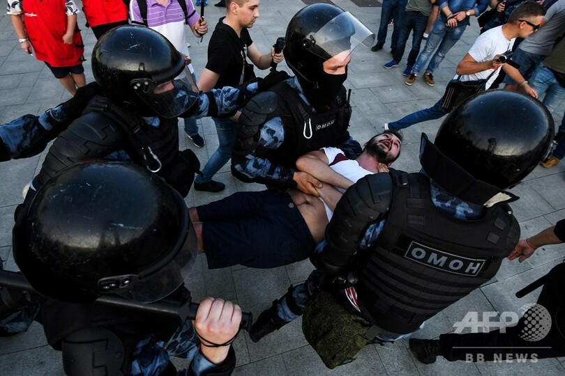 27日のデモは、9月に実施されるモスクワ市議会選で著名な野党候補の立候補登録が拒否されたことを受けて実施されたもので、約3500人が参加。当局の許可は得ておらず、市役所前に集まろうとするデモ隊を警察が警棒を使用して取り締まり、現場にいたAFP記者によると負傷者も出た。
