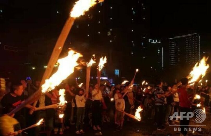 26日昼、99人の畢摩(ビモ、Bimo)と呼ばれる祈祷(きとう)師が祝福のドラをたたき、高さ17メートルの巨大たいまつに火を付けた。その後、石林県内の7つの町を代表するグループが歌と踊りのパフォーマンスを繰り広げたほか、152頭の牛による闘牛が行われ、数万人の観客らを魅了した。