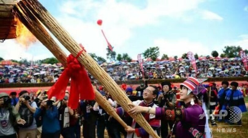 26日昼、99人の畢摩(ビモ、Bimo)と呼ばれる祈祷(きとう)師が祝福のドラをたたき、高さ17メートルの巨大たいまつに火を付けた。その後、石林県内の7つの町を代表するグループが歌と踊りのパフォーマンスを繰り広げたほか、152頭の牛による闘牛が行われ、数万人の観客らを魅了した。