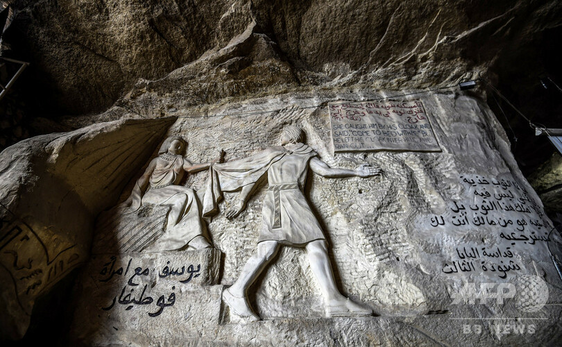 【8月10日 AFP】マリオさん(51)は口笛を吹きながら、エジプト・カイロのモッカタム(Mokkatam)の丘の上にある洞窟教会として知られる聖シモン修道院(St. Simon Monastery)で、岩窟に巡らされた足場をよじ登り、彫刻に最後の仕上げを施していた。
