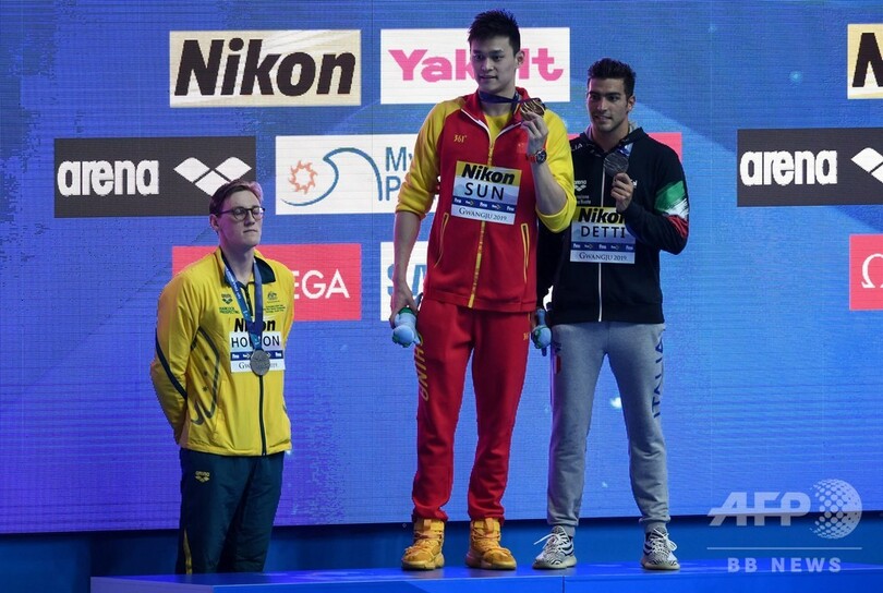 韓国・光州(Gwangju)で行われた世界水泳では、血液検体を金づちで壊すなどの疑惑が報じられた孫に対し、オーストラリアのマック・ホートン(Mack Horton)らが抗議していた。