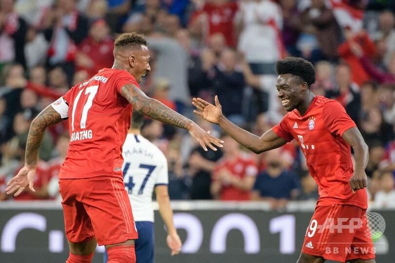 トッテナムはエリク・ラメラ(Erik Lamela)とクリスティアン・エリクセン(Christian Eriksen)の得点で2-0とリードするも、後半にはバイエルンに新加入した19歳ヤン・フィーテ・アープ(Jann Fiete Arp)と18歳のアルフォンソ・デービス(Alphonso Davies)にゴールを許し、追いつかれた。(c)AFP