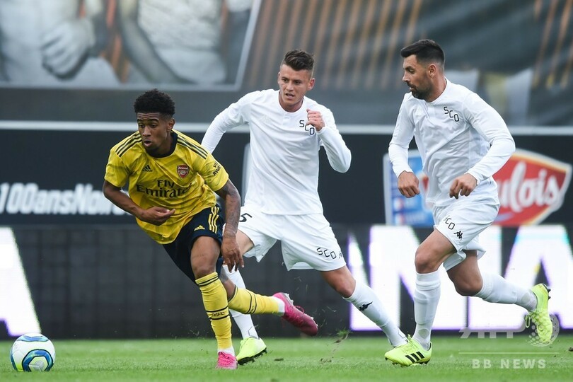 アーセナル(Arsenal)は1-1で迎えたPK戦を4-3で制し、アンジェSCO(Angers SCO)に勝利。アーセナルはこの試合で先制を許したが、後半開始直後にリース・ネルソン(Reiss Nelson)が同点弾をマークした。(c)AFP